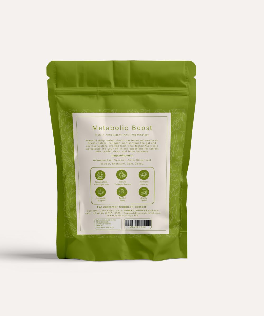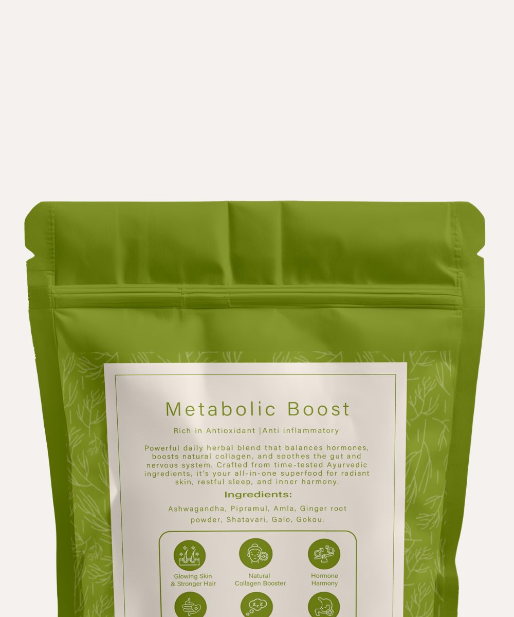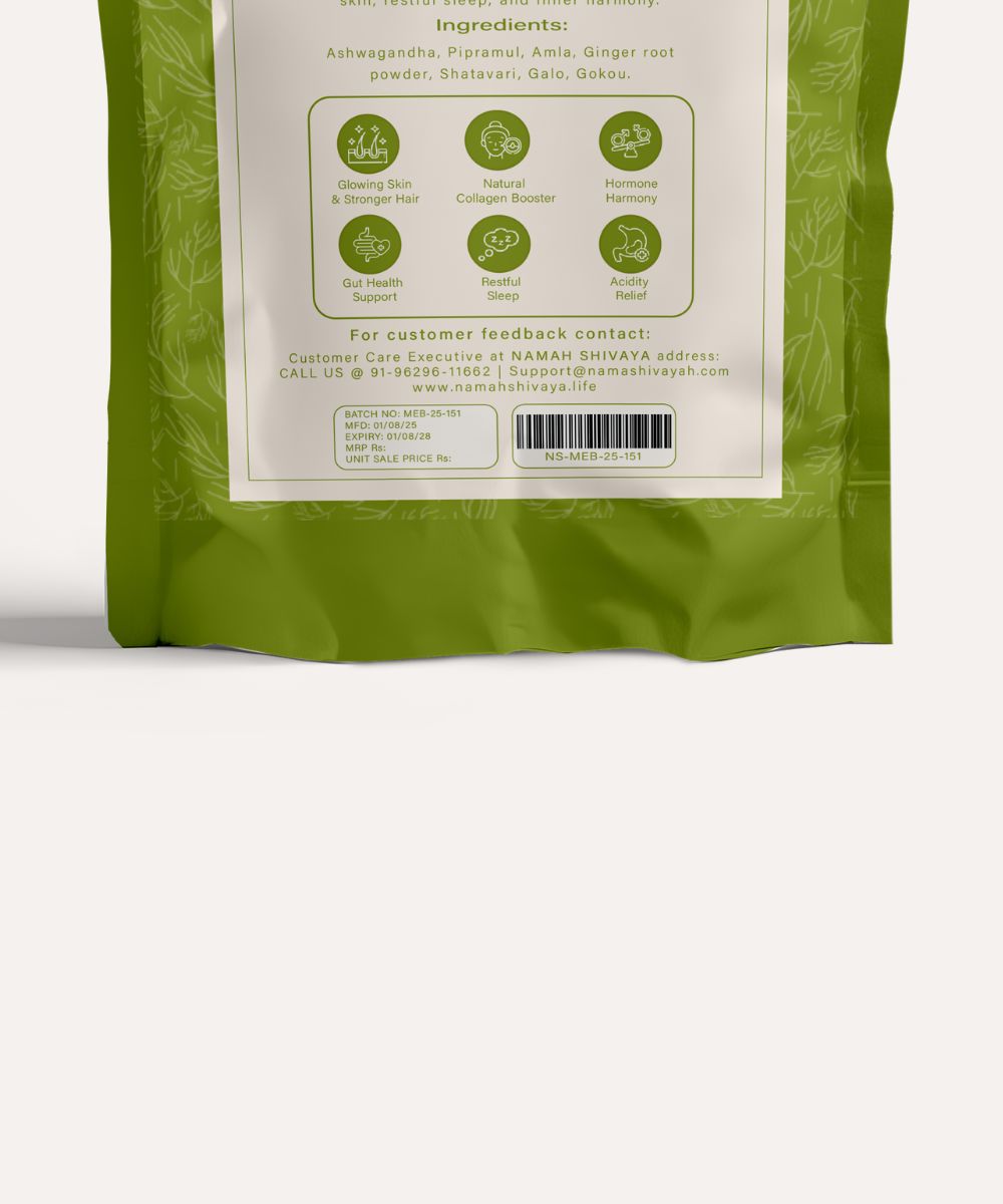 Powerful daily herbal blend that balances hormones, boosts natural collagen, and soothes the gut and nervous system. Crafted from time-tested Ayurvedic ingredients, it’s your all-in-one superfood for radiant skin, restful sleep, and inner harmony.