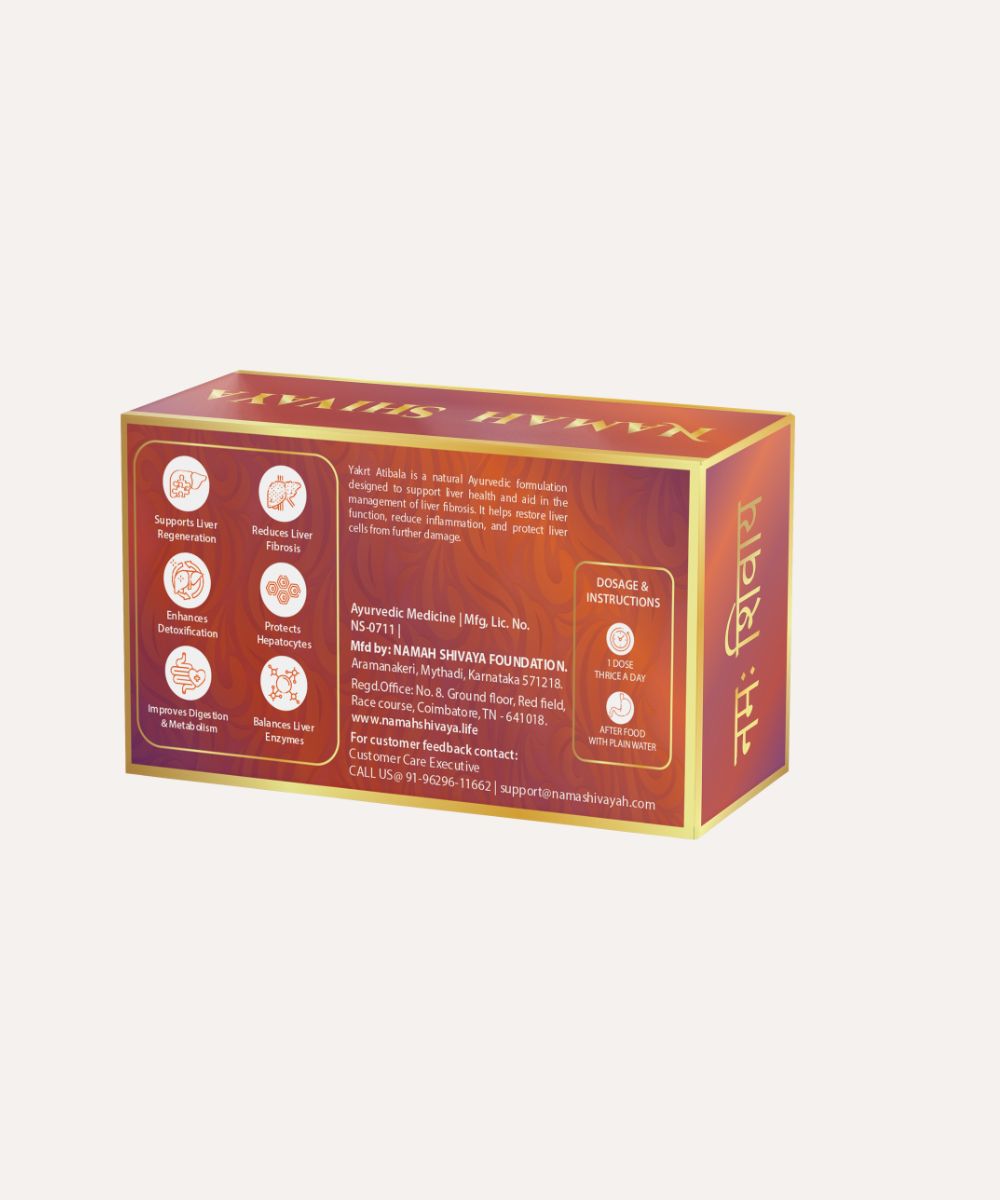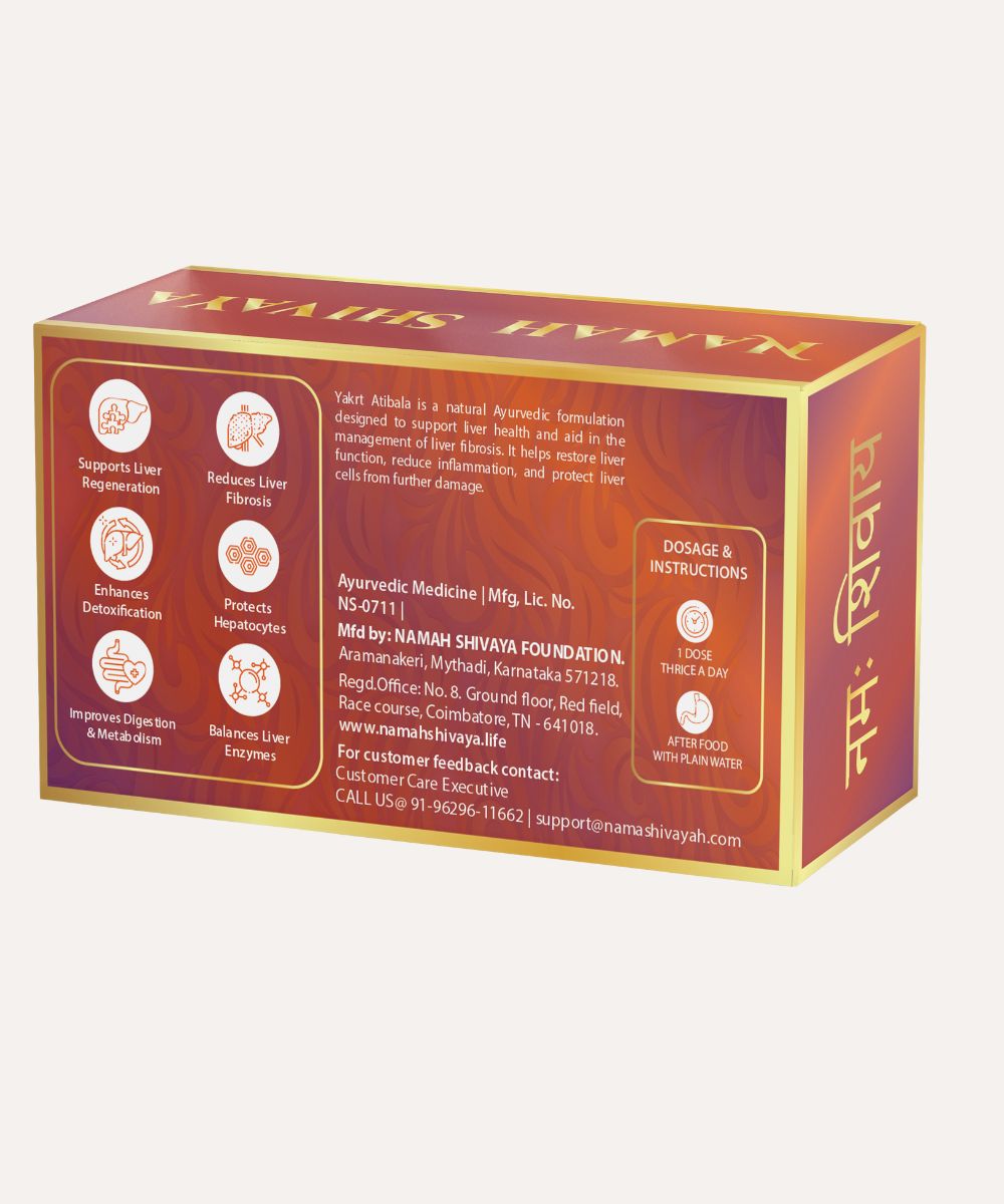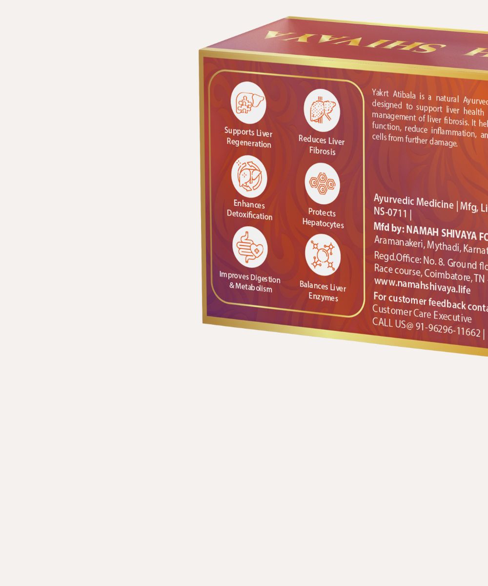 Yakrit Atibala is a natural Ayurvedic formulation designed to support liver health and aids in the management of liver fibrosis. It helps restore liver function, reduce inflammation, and protect liver cells from further damage.