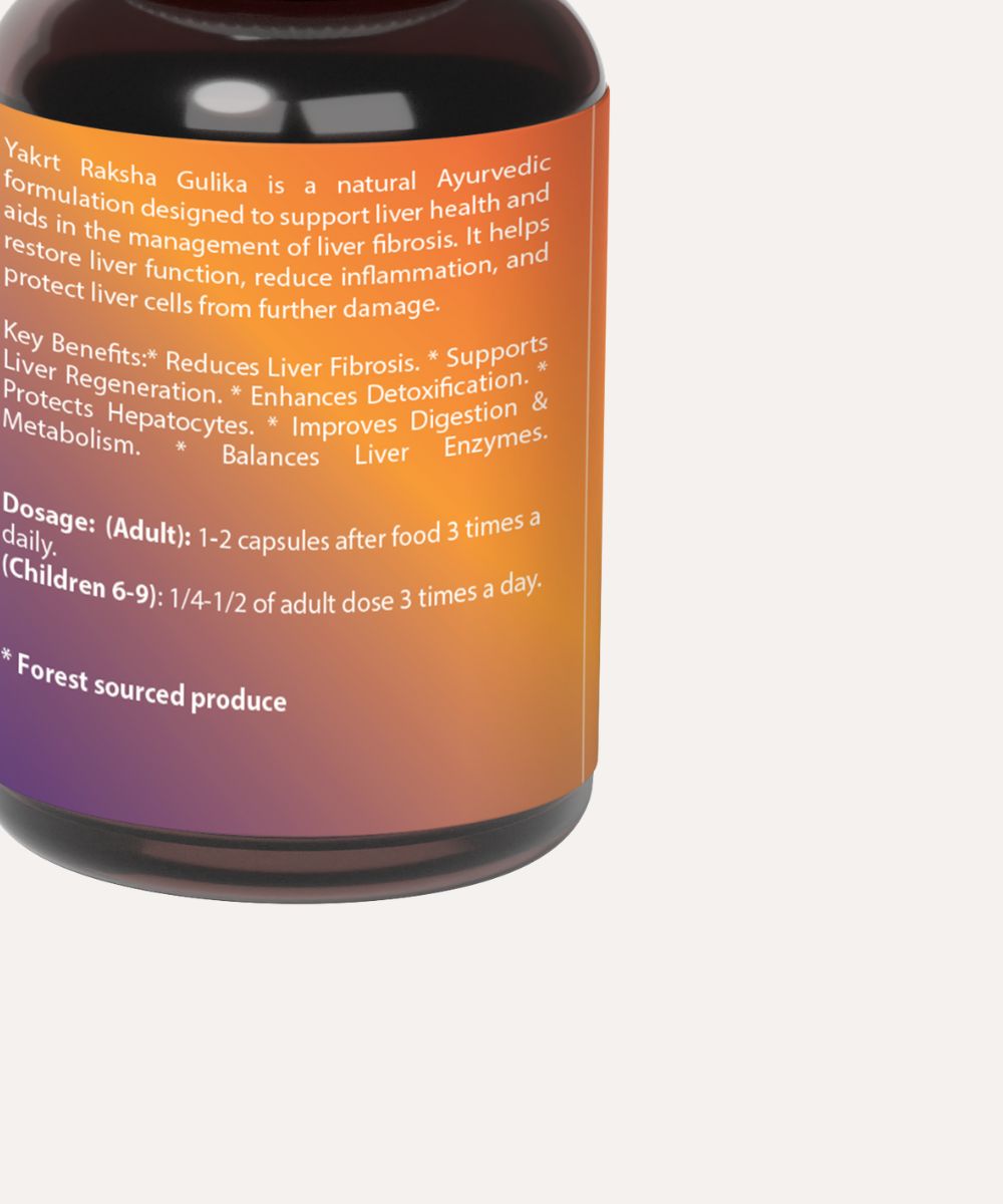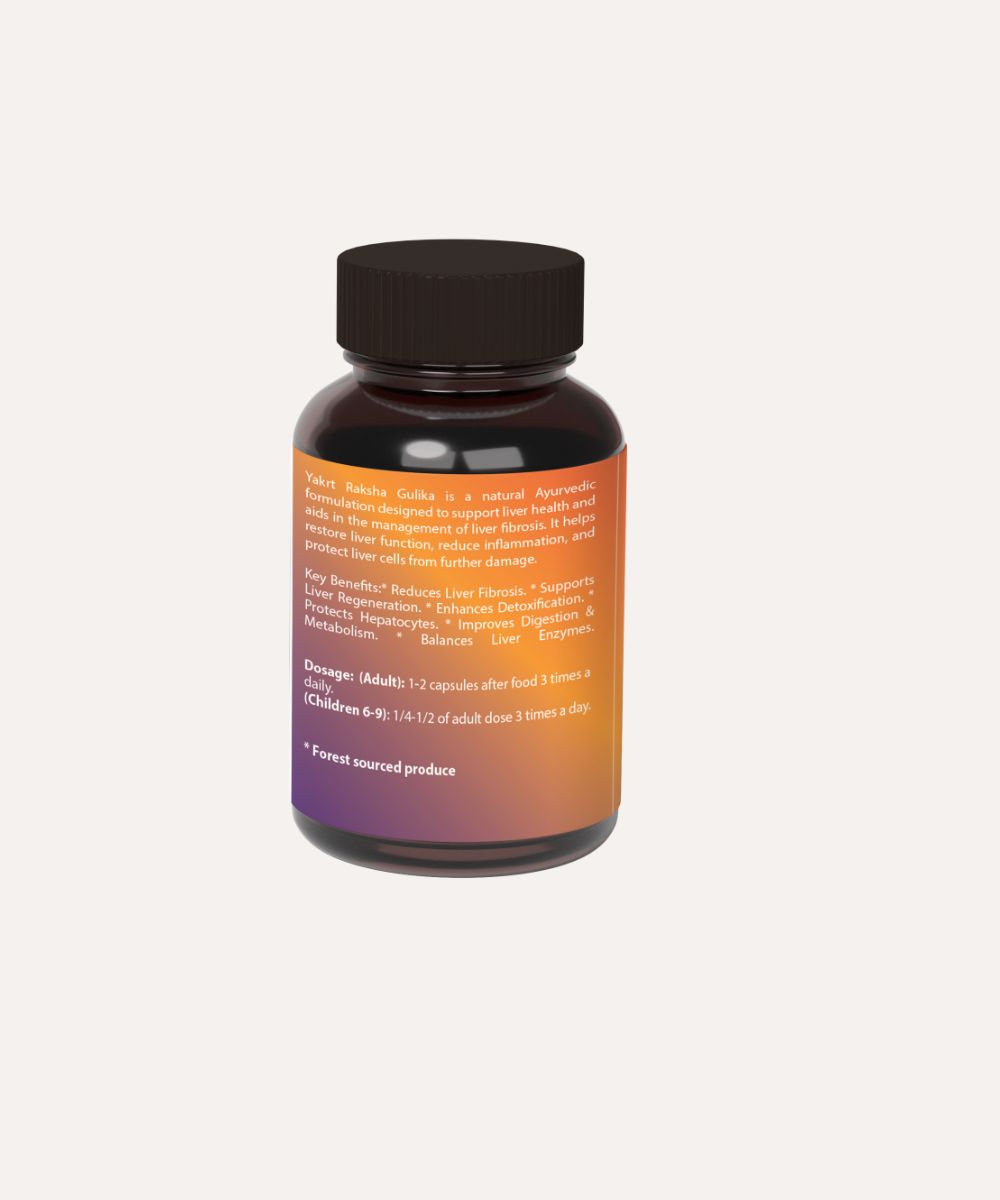 Yakrit Raksha Gulika is a natural Ayurvedic formulation designed to support liver health and aids in the management of liver fibrosis. It helps restore liver function, reduce inflammation, and protect liver cells from further damage.